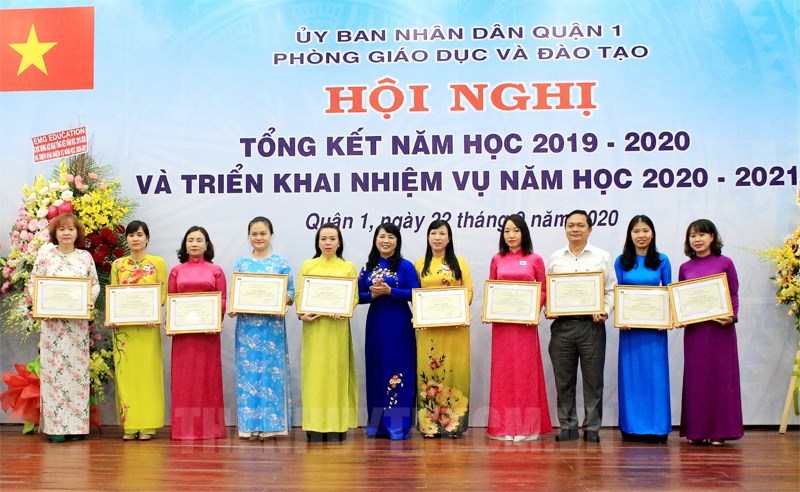 Trao khen thưởng cho các tập thể tiêu biểu năm học 2019 - 2020.(Thanhuytphcmvn) - Sáng 22/9, Phòng Giáo dục và đào tạo (GD&ĐT) Quận 1 tổng kết năm học 2019 - 2020. Đến dự có các đồng chí: Trần Kim Yến, Ủy viên Ban Thường vụ Thành ủy, Bí thư Quận ủy Quận 1; Lê Hoài Nam, Phó Giám đốc Sở Giáo dục và Đào tạo TPHCM.