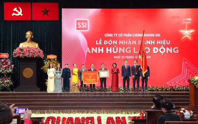Phó Chủ tịch nước Đặng Thị Ngọc Thịnh trao danh hiệu Anh hùng Lao động thời kỳ đổi mới cho Công ty Cổ phần chứng khoán SSI.(Thanhuytphcm.vn) - Sáng 27/12, tại TPHCM, Phó Chủ tịch nước Đặng Thị Ngọc Thịnh đã đến dự và trao danh hiệu Anh hùng Lao động thời kỳ đổi mới cho Công ty Cổ phần chứng khoán SSI (SSI) nhân kỷ niệm 20 năm ngày thành lập. Đến dự có nguyên Chủ tịch nước Trương Tấn Sang, Phó Chủ tịch UBND TPHCM Phan Thị Thắng, lãnh đạo các Bộ, ngành và Uỷ ban chứng khoán nhà nước.