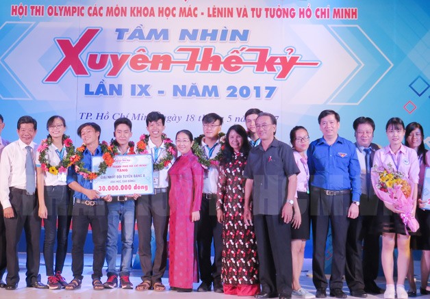(Thanhuytphcm.vn) – Tối 18/5, Thành đoàn TPHCM phối hợp Đảng ủy Khối các trường đại học – cao đẳng và trung cấp chuyên nghiệp, Đảng ủy Đại học Quốc gia TPHCM tổ chức vòng chung kết xếp hạng và trao giải Hội thi Olympic các môn Khoa học Mác – Lênin và tư tưởng Hồ Chí Minh “Tầm nhìn xuyên thế kỷ” lần thứ 9, năm 2017. Đến dự có Phó Bí thư Thành ủy TPHCM Võ Thị Dung.