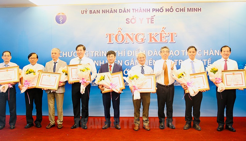 Dịp này, UBND TPHCM tặng Bằng khen cho 8 cá nhân đã có thành tích xuất sắc khi tham gia chương trình thí điểm thực hành tại bệnh viện đa khoa gắn với trạm y tế trên địa bàn TP năm 2023; tặng Bằng khen cho 9 tập thể đã có thành tích xuất sắc trong công tác tổ chức đào tạo bác sĩ thực hành tại bệnh viện đa khoa gắn với trạm y tế trên địa bàn TPHCM. Sở Y tế TP tặng Giấy khen cho 59 cá nhân và trao chứng chỉ hành nghề cho 270 bác sĩ khi tham gia chương trình thí điểm thực hành tại bệnh viện đa khoa gắn với trạm y tế trên địa bàn TPHCM năm 2023.
