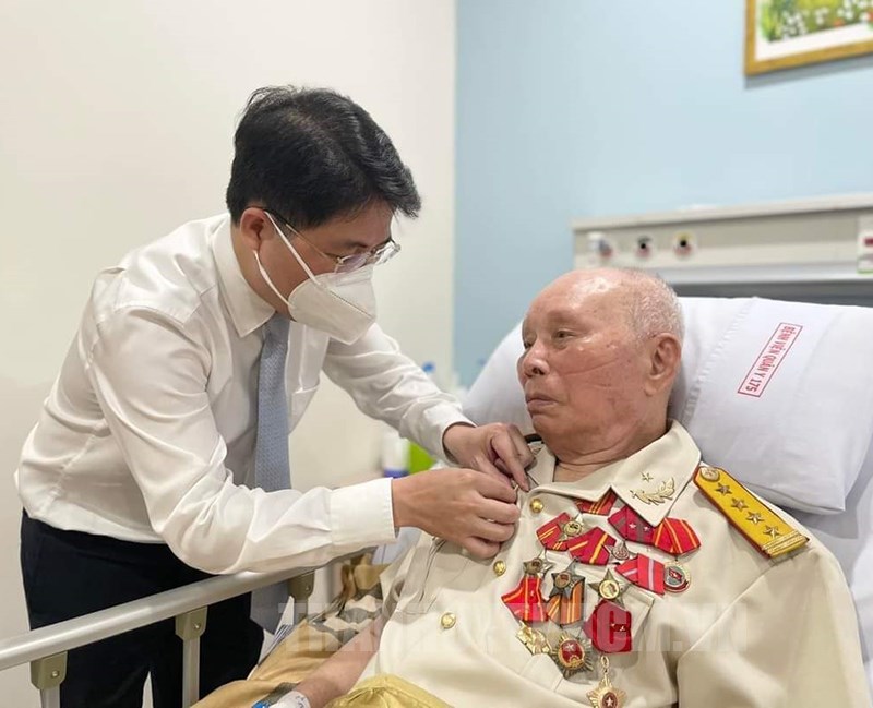 Bí thư Quận ủy Phạm Hồng Sơn trao Huy hiệu 75 năm tuổi Đảng cho đồng chí Bảo Cường.(Thanhuytphcm.vn) – Chào mừng kỷ niệm 47 năm Ngày Giải phóng miền Nam, thống nhất đất nước (30/4/1975 - 30/4/2022), chiều 15/4, tại Khoa Điều trị cán bộ cao cấp quân đội của Bệnh viện Quân Y 175, Quận ủy Phú Nhuận đã tổ chức trao tặng Huy hiệu 75 năm tuổi Đảng trước thời hạn cho đồng chí Đại tá Bảo Cường (Đỗ Văn Nhã), thuộc Đảng bộ Phường 13, quận Phú Nhuận.