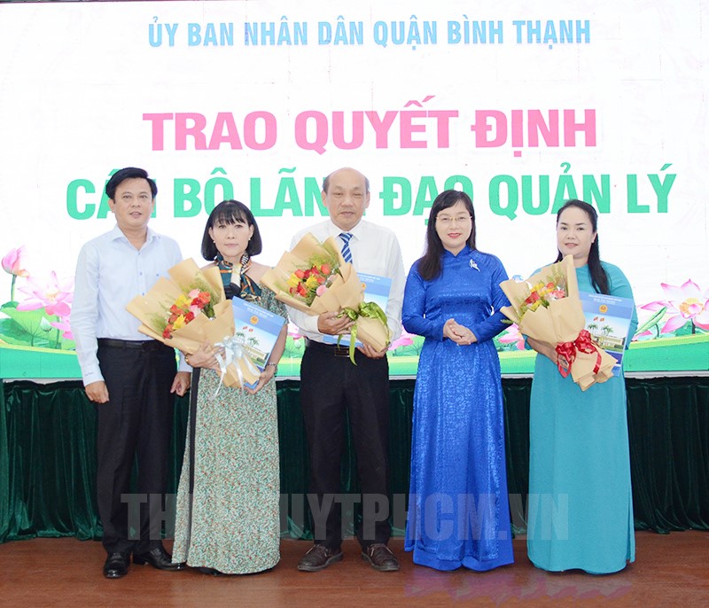 Thường trực UBND quận trao quyết định điều động, bổ nhiệm các đồng chí: Nguyễn Thị Nam Phương, Hiệu trưởng Trường Mầm non 3 giữ chức vụ Hiệu trưởng Trường Mầm non 14; Kim Bạch Phụng, Phó Hiệu trưởng Trường Mầm non 14 giữ chức vụ Hiệu trưởng Trường Mầm non 3; Trần Thị Thu Ngân, giáo viên Trường Tiểu học Bế Văn Đàn giữ chức vụ Phó Hiệu trưởng Trường Tiểu học Tầm Vu; Lê Việt Tiến, giáo viên Trường Tiểu học Hồng Hà giữ chức vụ Phó Hiệu trưởng Trường Tiểu học Bình Hòa; Đặng Thị Phạm Dung, Phó Hiệu trưởng Trường Tiểu học Cửu Long giữ chức vụ Phó Hiệu trưởng Trường Tiểu học Nguyễn Trọng Tuyển; Trần Ngọc Luyện, Hiệu trưởng Trường THCS Bình Quới Tây giữ chức vụ Hiệu trưởng Trường THCS Yên Thế, thời gian giữ chức vụ là 5 năm.