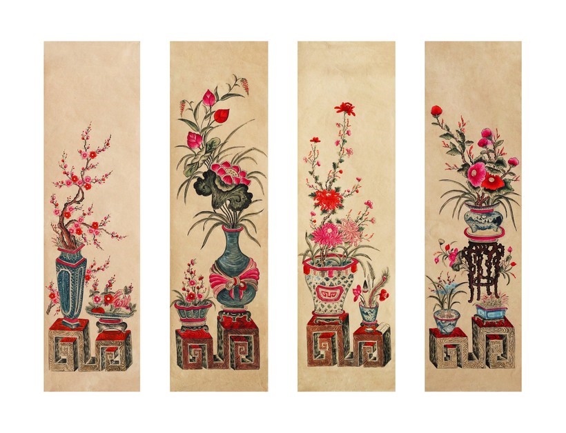 Bộ tranh Tứ quý trưng bày tại triển lãm(Thanhuytphcm.vn) - Sáng 6/1, tại TPHCM, Bảo tàng Mỹ thuật TPHCM phối hợp với Bảo tàng Mỹ thuật Việt Nam khai mạc triển lãm “Sắc xuân qua sưu tập tranh dân gian Tứ bình của Bảo tàng Mỹ thuật Việt Nam” tới công chúng yêu nghệ thuật tại TPHCM.