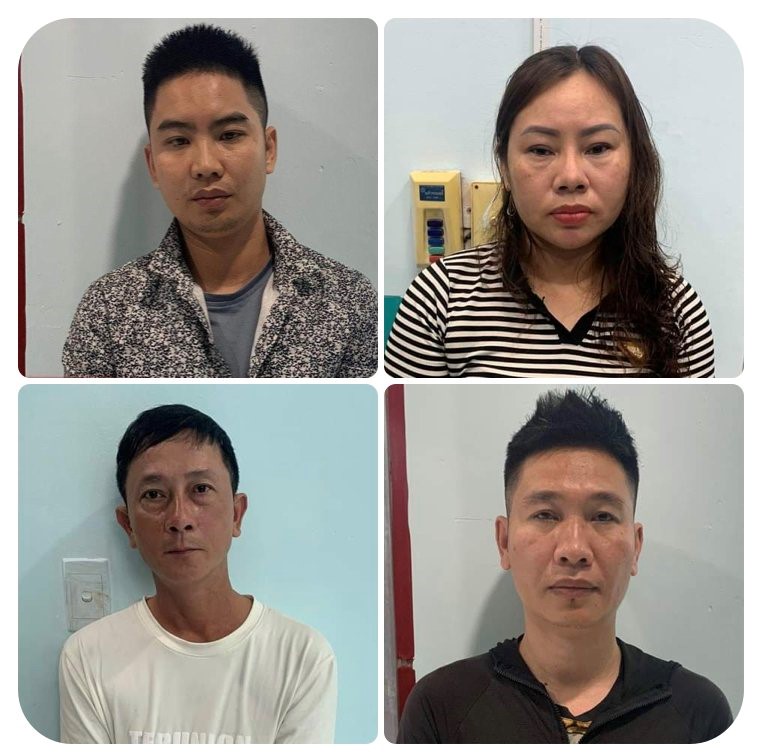 Các đối tượng gồm: Huỳnh Ngọc Thu, Đoàn Thị Phương, Nguyễn Ngọc Quý, Nguyễn Viết Lộc tại cơ quan điều tra (ảnh do Công an quận Tân Bình cung cấp)(Thanhuytphcm.vn) - Chiều 10/10, Công an quận Tân Bình cho biết, cơ quan cảnh sát điều tra Công an quận Tân Bình đã ra quyết định khởi tố vụ án, khởi tố bị can đối với 6 đối tượng có liên quan để điều tra về các tội danh “cho vay lãi nặng trong giao dịch dân sự”, “cưỡng đoạt tài sản” và “hủy hoại tài sản” do Phùng Ngọc Thu và Đoàn Thị Phương cầm đầu.