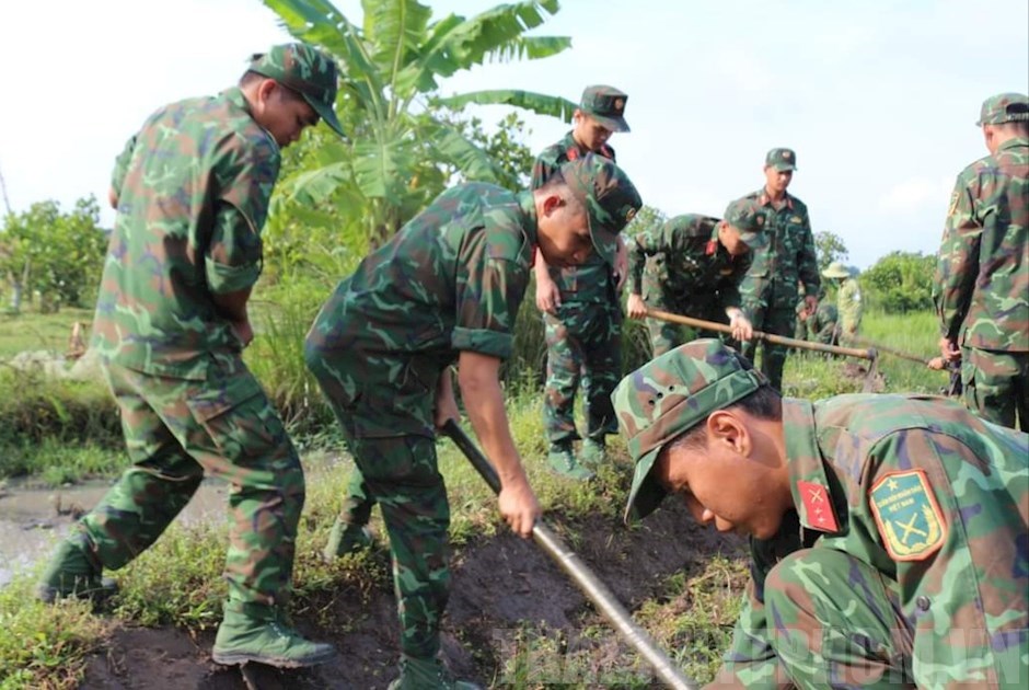 Cụ thể, thực hiện ra quân làm công tác dân vận, xây dựng nông thôn mới đợt này, cán bộ, chiến sĩ Trung đoàn Gia Định phối hợp với Nhân dân ấp Đồng Lớn và ấp Ràng, xã Trung Lập Thượng tiến hành nạo vét kênh mương, khơi thông dòng chảy tuyến kênh N25-2-4-3 chiều dài hơn 400m, chiều rộng 1,5m…