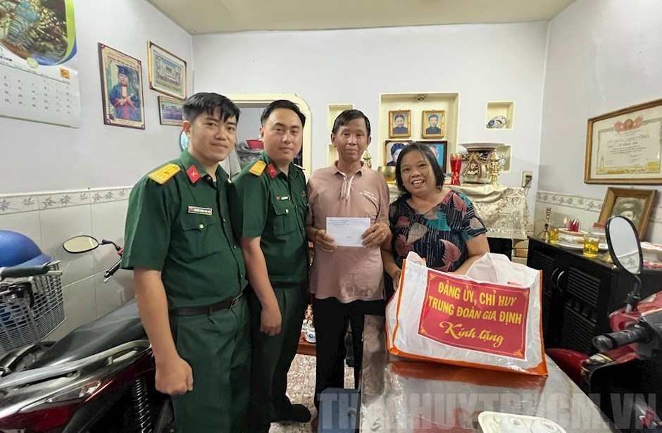 Tới thăm các gia đình, Thiếu tá Ngô Trường An bày tỏ lòng biết ơn, trân trọng đối với những cống hiến, hy sinh của các Mẹ Việt Nam anh hùng, các anh hùng liệt sỹ, thương binh cho độc lập, tự do của dân tộc, cho hạnh phúc của nhân dân. Đồng chí báo cáo với các Mẹ Việt Nam anh hùng, thân nhân gia đình liệt sĩ, thương binh, bệnh binh những kết quả nổi bật của Trung đoàn đã đạt được trong thời gian qua, nhất là trong năm 2021 và 6 tháng đầu năm 2022. Các cán bộ, chiến sĩ Trung đoàn trực tiếp tham gia trên tuyến đầu phòng chống dịch bệnh, hỗ trợ đắc lực Đảng bộ, chính quyền nhân dân TPHCM phòng chống dịch bệnh Covid-19 với hơn 45.500 ngày công, hỗ trợ chăm lo cho người dân Thành phố có hoàn cảnh khó khăn bị ảnh hưởng bởi dịch bệnh Covid-19. Qua đó, góp phần cùng Đảng bộ, chính quyền nhân dân Thành phố hoàn thành tốt nhiệm vụ kép, vừa phòng chống dịch có hiệu quả, vừa phát triển kinh tế - xã hội...