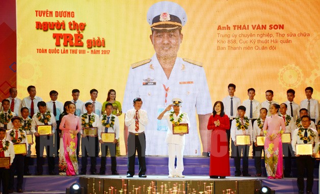 (Thanhuytphcm.vn) - Bộ quân phục sĩ quan hải quân khiến Trung úy Thái Văn Sơn nổi bật hẳn tại Liên hoan “Người thợ trẻ giỏi” toàn quốc 2017 - lần VIII (do Trung ương Đoàn TNCS Hồ Chí Minh vừa tổ chức tại TPHCM). Là quân nhân duy nhất góp mặt trong danh sách 60 người thợ trẻ giỏi được tôn vinh, đại diện cho 4,5 triệu thanh niên công nhân, nghệ nhân trẻ, học viên các trường nghề trên toàn quốc, với Trung úy Thái Văn Sơn vừa là vinh dự vừa là động lực phấn đấu cho những thành tích cao hơn.