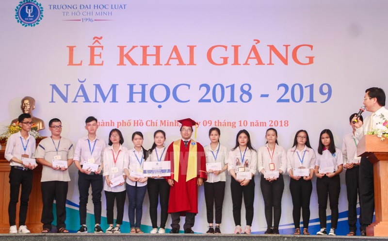 Tại lễ khai giảng, Trường ĐH Luật TPHCM đã khen thưởng cho các tập thể, cá nhân sinh viên có thành tích trong năm học 2017 – 2018 và các tân sinh viên đạt kết quả cao trong kỳ tuyển sinh ĐH hệ chính quy năm 2018, bao gồm 10 tập thể lớp đạt danh hiệu “Lớp sinh viên tiên tiến”; 25 sinh viên đạt danh hiệu “Sinh viên giỏi” năm học 2017 – 2018; 23 sinh viên có nhiều đóng góp trong chiến dịch tình nguyện Mùa Hè xanh năm 2018 và công tác tư vấn tuyển sinh 2018; 4 sinh viên khóa 43 đạt điểm thi cao nhất khối thi trong kỳ thi tuyển sinh ĐH và các sinh viên đạt các giải thưởng về nghiên cứu khoa học…