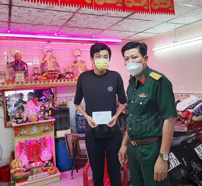 Chỉ huy trưởng Ban Chỉ huy Quân sự Quận 6 thăm hỏi, tặng quà cho chiến sĩ dân quân thường trực bị chấn thương.(Thanhuytphcm.vn) - Đối với Nguyễn Lê Tuấn, chiến sĩ dân quân thường trực Phường 8, Quận 6, tuổi 20 là những ngày tháng đẹp đẽ và trọn vẹn nhất khi được nỗ lực thực hiện ước mơ và đặc biệt là được cống hiến một phần sức trẻ vào những công việc tình nguyện có ích cho cộng đồng và xã hội. Trước cuộc chiến chống dịch Covid-19, Nguyễn Lê Tuấn là một trong 125 cán bộ, chiến sĩ lực lượng vũ trang Quận 6 tham gia hỗ trợ thiết lập và phục vụ tại Trung tâm Cách ly và điều trị phòng, chống dịch Covid-19 của thành phố.