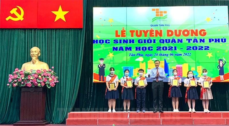 Tại buổi lễ, UBND quận Tân Phú tặng giấy khen và khánh lưu niệm cho 179 em học sinh có thành tích cao trong kỳ thi học sinh giỏi cấp quốc gia và cấp thành phố năm học 2021 - 2022; còn lại 7 các tập thể, 48 giáo viên và 260 học sinh giỏi sẽ được khen thưởng trong dịp tổng kết năm học 2021 - 2022.