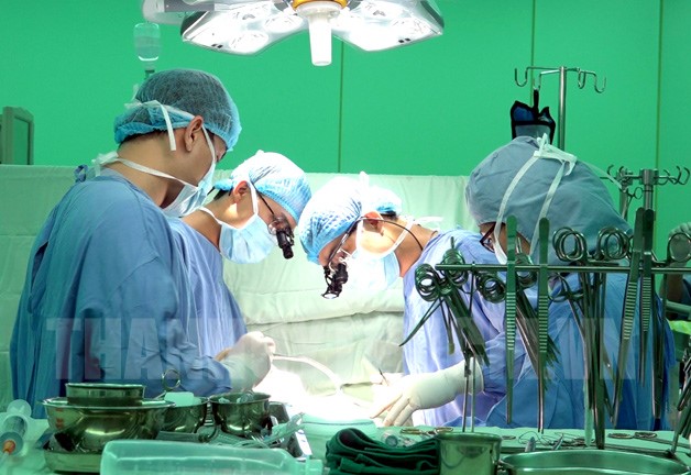 Các bác sĩ phẫu thuật cho bệnh nhân Nguyễn Văn L. (Ảnh: Nam Phương)