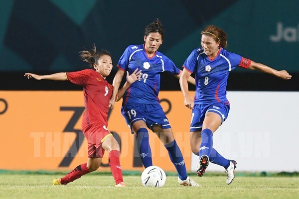Đội nữ Việt Nam (áo đỏ) dừng bước ở vòng Tứ kết(Thanhuytphcm.vn)- Không đạt được kết quả như ý khi dừng chân ở vòng tứ kết môn bóng đá nữ Asiad 2018 sau khi để thua Đài Bắc Trung Hoa (Trung Quốc) trên loạt sút luân lưu 11m, đội tuyển nữ Việt Nam đã nhận được thư động viên của Chủ tịch Liên đoàn bóng đá Việt Nam (VFF) Lê Hùng Dũng ngay trong đêm 24/8.
