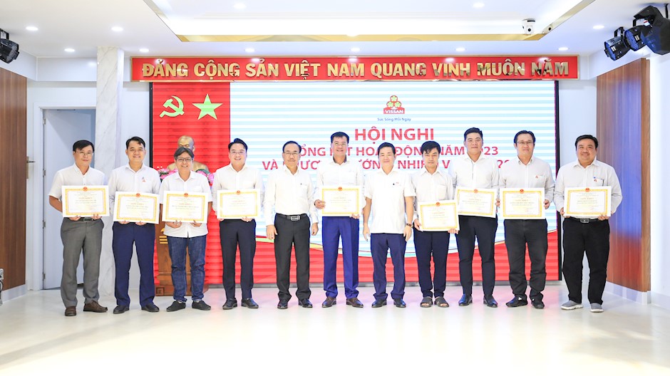 Các cá nhân hoàn thành xuất sắc nhiệm vụ năm 2023 nhận khen thưởng tại hội nghị(Thanhuytphcm.vn) - Chiều 16/1, Đảng bộ Công ty Cổ phần Việt Nam Kỹ nghệ Súc sản (Vissan), đơn vị thành viên Tổng Công ty Thương mại Sài Gòn TNHH MTV (Satra) tổ chức hội nghị tổng kết hoạt động sản xuất kinh doanh và công tác xây dựng Đảng năm 2023.