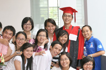 Với tài năng và trái tim ấm áp, giảng viên trẻ Võ Trung Tín luôn được các sinh viên yêu mến, ngưỡng mộ. Trong ảnh: Thầy Tín (thứ 2, từ phải qua) cùng các sinh viên Trường Đại học Luật TPHCM.