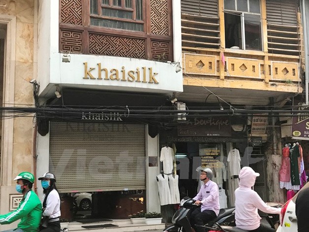 Cửa hàng Khaisilk trên phố Hàng Gai sau khi bị cơ quan chức năng kiểm tra. (Ảnh: Vietnam+)