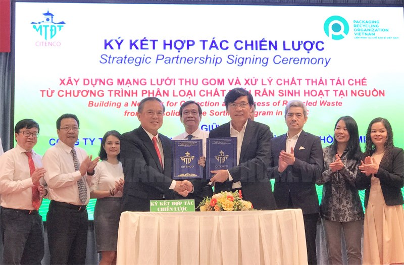 Ký kết biên bản ghi nhớ hợp tác “Xây dựng mạng lưới thu gom và xử lý chất thải tái chế từ chương trình phân loại chất thải rắn sinh hoạt tại nguồn”.(Thanhuytphcm.vn) - Sáng 16/11, Công ty TNHH MTV Môi trường đô thị TPHCM và Liên minh tái chế bao bì Việt Nam tổ chức ký kết biên bản ghi nhớ hợp tác “Xây dựng mạng lưới thu gom và xử lý chất thải tái chế từ chương trình phân loại chất thải rắn sinh hoạt tại nguồn”.