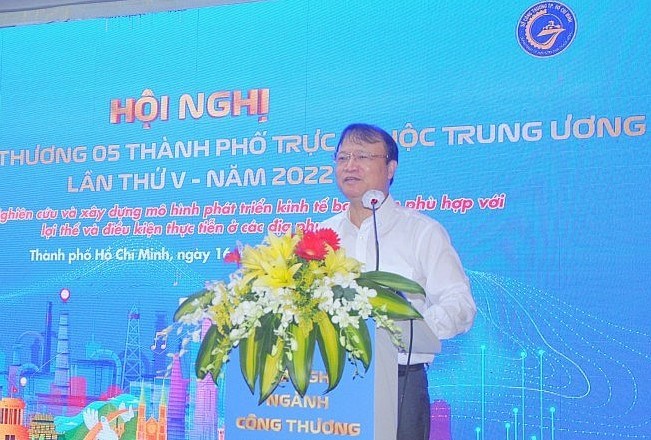 Thứ trưởng Bộ Công thương Đỗ Thắng Hải phát biểu tại hội nghị(Thanhuytphcm.vn) - Chiều 16/11, Sở Công thương TPHCM phối hợp với các địa phương tổ chức Hội nghị ngành Công thương 5 thành phố trực thuộc Trung ương lần thứ V năm 2022 với chủ đề “Nghiên cứu và xây dựng mô hình phát triển kinh tế ban đêm phù hợp với lợi thế và điều kiện thực tiễn ở các địa phương”.
