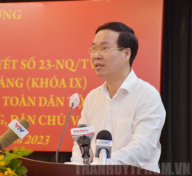 Qua ý kiến của các đại biểu, đồng chí Võ Văn Thưởng nhấn mạnh, từ việc thực hiện Nghị quyết số 23 chúng ta nhận thức rõ, sâu sắc hơn về đại đoàn kết toàn dân tộc; xây dựng và phát huy sức mạnh đại đoàn kết toàn dân tộc là một nhiệm vụ có ý nghĩa chiến lược đặc biệt quan trọng, quyết định sự thành bại của cách mạng Việt Nam, của sự nghiệp xây dựng và bảo vệ Tổ quốc Việt Nam xã hội chủ nghĩa. “Trong mỗi thời điểm, đặc biệt là những thời điểm khó khăn nhất thì tinh thần đoàn kết, đại đoàn kết toàn dân tộc lại được khơi dậy, phát huy và có những đóng góp rất to lớn” – đồng chí Võ Văn Thưởng nhấn mạnh.