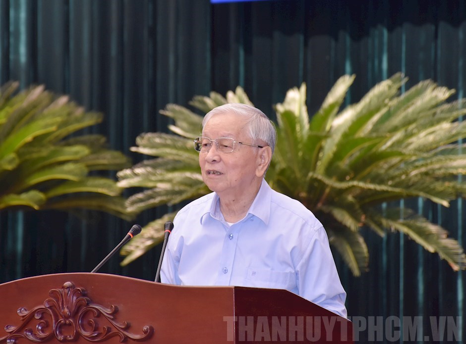 Đồng chí Phạm Chánh Trực, nguyên Phó trưởng Ban Kinh tế Trung ương, nguyên Phó Bí thư Thường trực Thành ủy, nguyên Chủ tịch HĐND TP là báo cáo viên của Hội nghị.