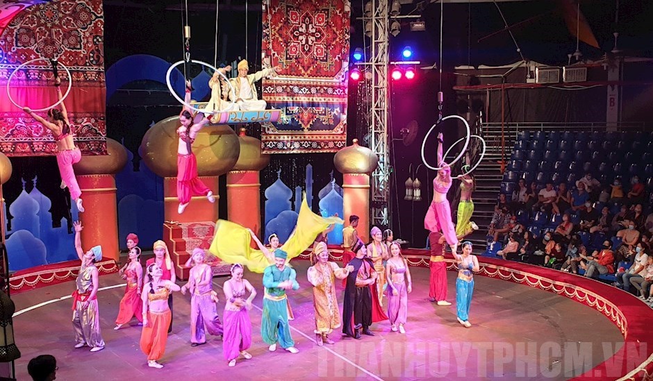 Vở kịch xiếc Ba Tư huyền bí có phối cảnh 3D hoành tráng. (Ảnh: Thúy Bình)(Thanhuytphcm.vn) - Phục vụ khán giả mùa Giáng sinh 2020, từ ngày 24 đến 27/12, Nhà hát Nghệ thuật Phương Nam chính thức công diễn vở kịch xiếc Ba Tư huyền bí (kịch bản, đạo diễn xiếc: NSƯT Bích Liên, đạo diễn: Tấn Lộc, biên đạo: Phạm Bảo Trung).
