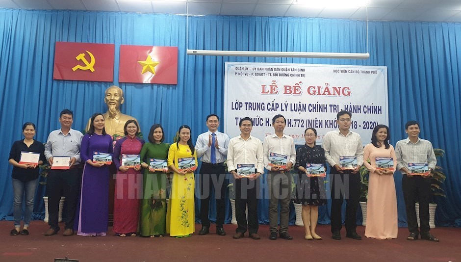 Trao bằng tốt nghiệp cho các học viên tốt nghiệp lớp trung cấp lý luận chính trị - hành chính H.749, H.772 quận Tân Bình (tháng 12/2020). (Ảnh minh họa: thanhuytphcm.vn)(Thanhuytphcm.vn) - Ngày 8/2/2022, Ban Bí thư đã ban hành Quy định số 57-QĐ/TW về đối tượng, tiêu chuẩn và phân cấp đào tạo lý luận chính trị. Trong phần “giải thích từ ngữ”, Quy định này đã nêu nhiều nội dung khác nhau về việc đào tạo lý luận chính trị, các cấp đào tạo…, trong đó, đều gắn với một yêu cầu rất quan trọng trong công tác này là “vận dụng thực tiễn”. Tức là, trong đào tạo lý luận chính trị, cả phía cơ sở đào tạo, người giảng và người học đều phải gắn chặt lý thuyết với thực tiễn, đồng thời có sự liên hệ, thực hành một số kỹ năng cần thiết.